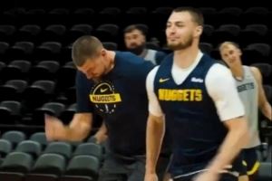 奔跑的五花肉!约基奇和布劳恩赛跑输了 后者比出获胜手势