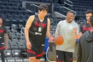 🤣我转悠!杨瀚森训练投进三分后 一路散步跟俩助教互动