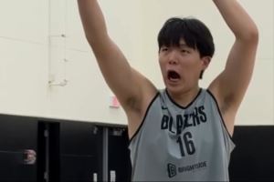 开拓者官方分享训练花絮:杨瀚森双手暴扣 罚球训练后搞怪互动